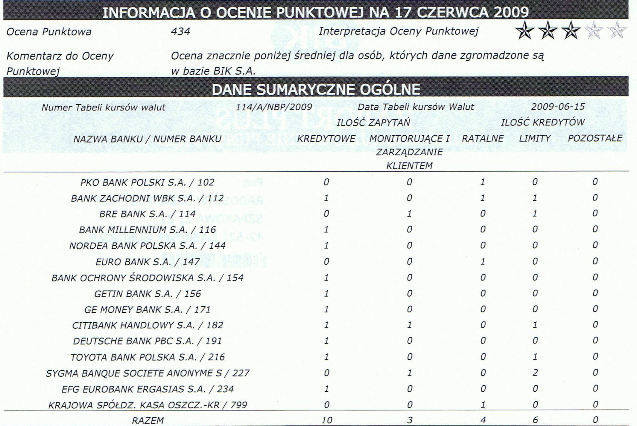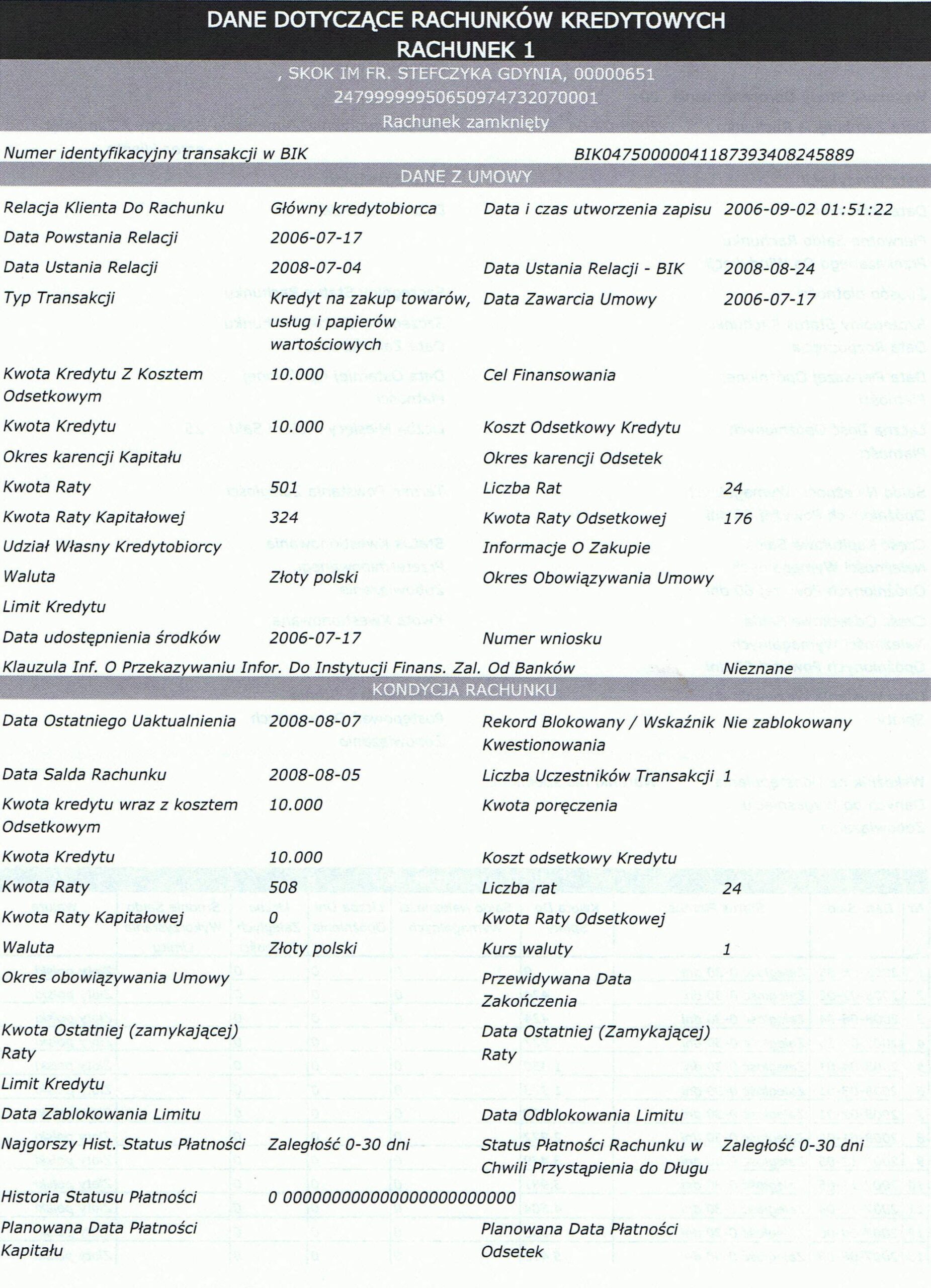 Tyle teorii, teraz to, co powinno czytelnikowi w prostszy, bo naoczny, sposób przybliżyć i oswoić tego potwora, za jakiego uważa się powszechnie Biuro Informacji Kredytowej: