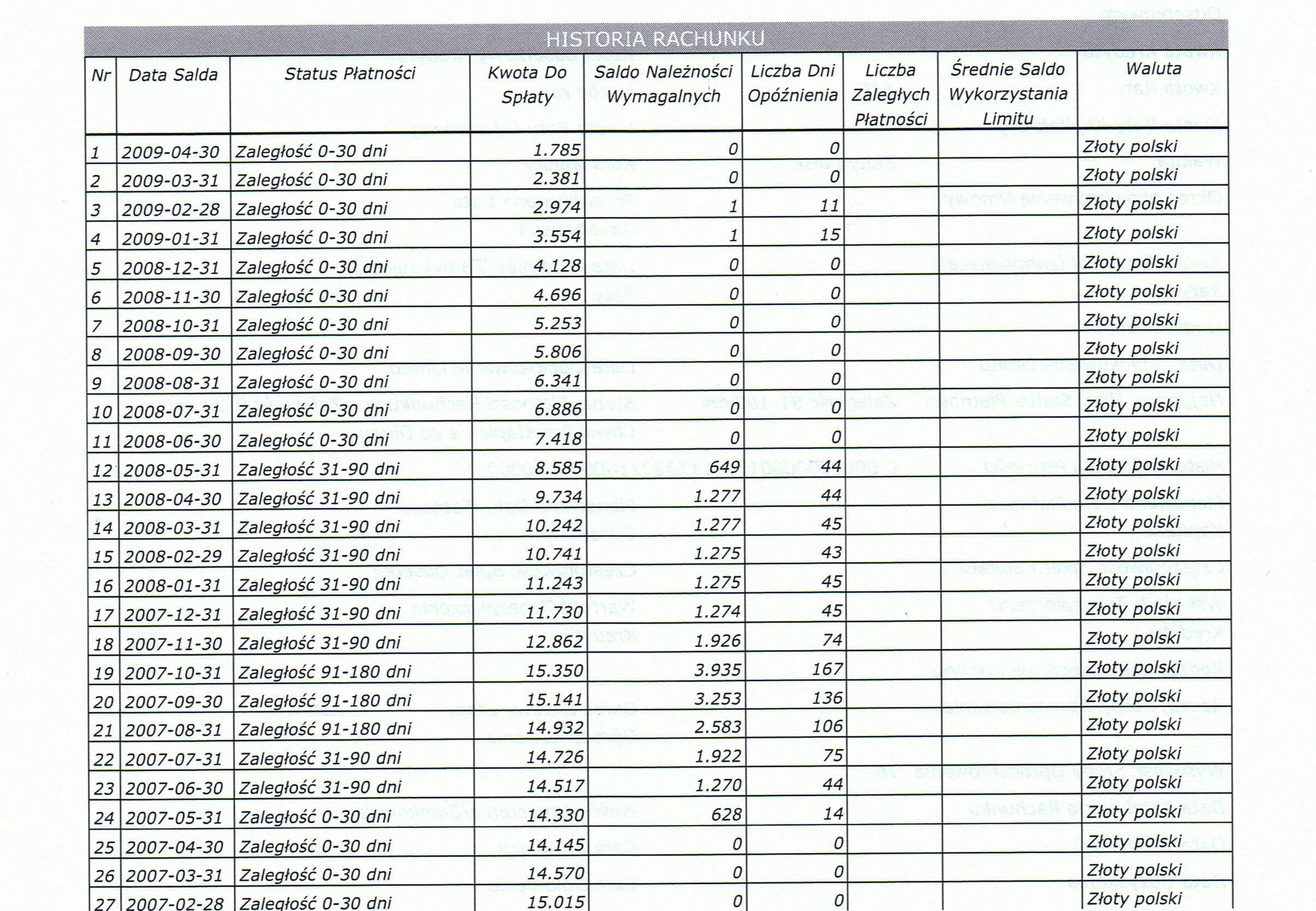 Prawdziwe kłopoty ma jednak ktoś, kogo historia spłat wygląda tak: